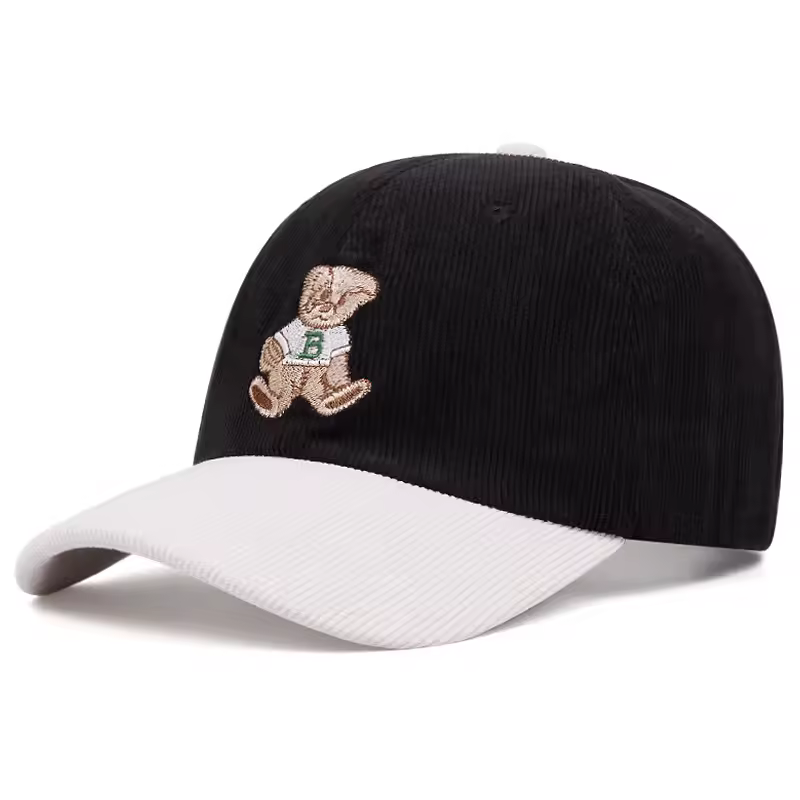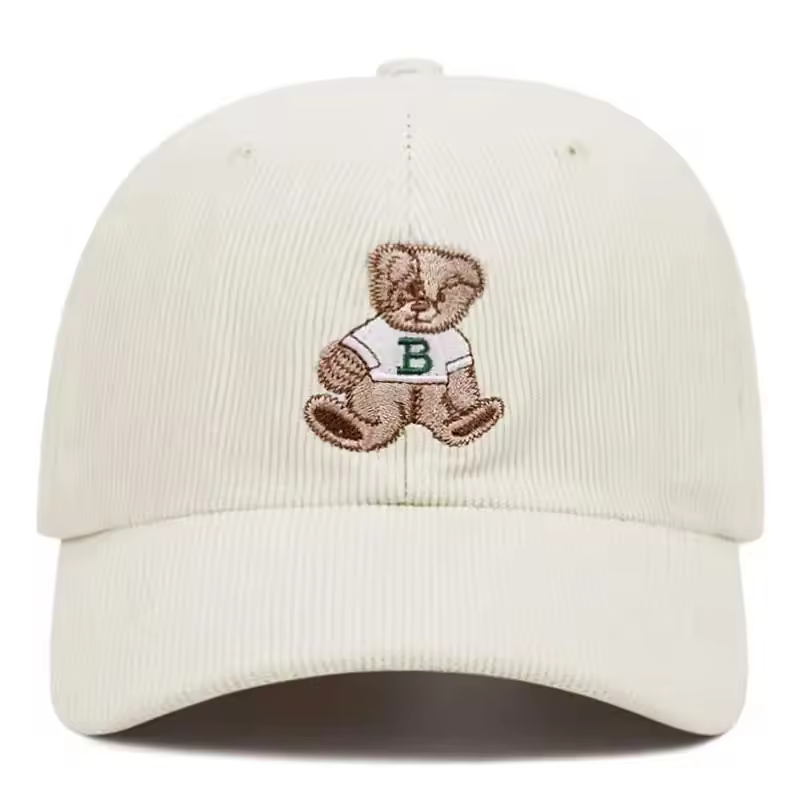 Cute bear embroidered corduroy baseball cap for men and women in autumn and winter outdoor sports events winter warm hats casual